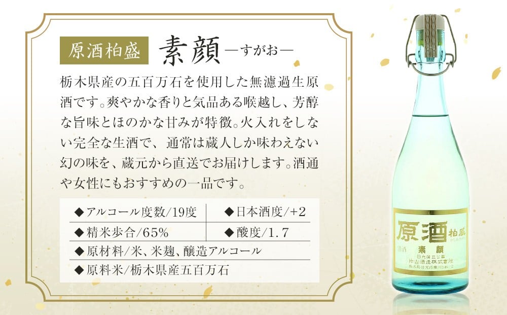 - 原酒柏盛「素顔」| 日本酒 地酒 無濾過 原酒 栃木