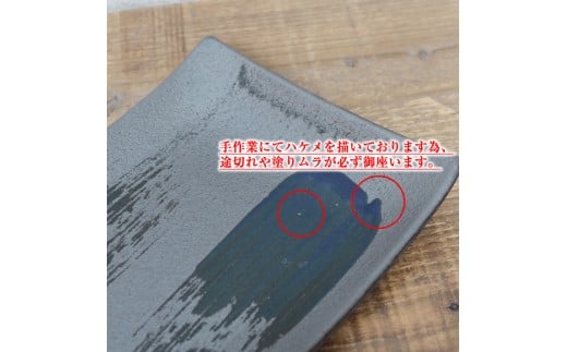- 信楽焼 陶器製 咲季ワイド長角皿(コバルト)