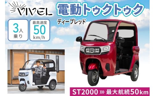 《電動トゥクトゥク》VIVEL (EV TRIKE) 3人乗り ST2000 ディープレッド 航続50km|ビベルトライク 電気トライク EVトゥクトゥク 電動乗り物 電動自動車 電気バイク [0546]