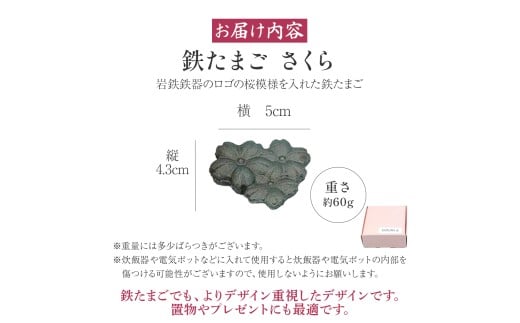 - 【鉄分補給に!】 岩鉄鉄器 の 鉄たまご さくら 鉄分 補給 鉄タマゴ 鉄玉子 かわいい 鉄器 鉄製 岩手製鉄 岩手県 北上市 B0435