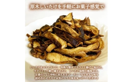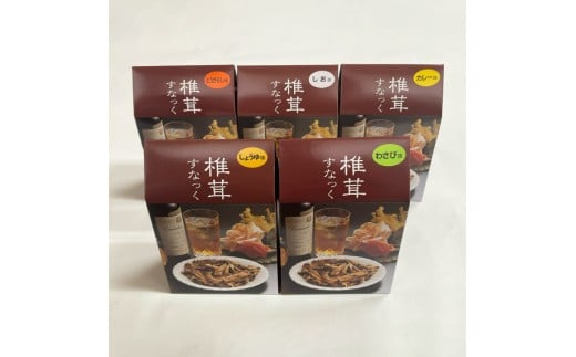 しいたけスナック5箱(箱無し)/しょうゆ味・しお味・わさび味・カレー味・とうがらし味 しいたけのお菓子(チップス)おつまみ ビールのおともに