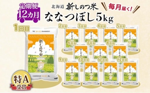 北海道 定期便 12ヵ月 連続 全12回 R7年産 北海道産 ななつぼし 5kg 精米 米 白米 ごはん お米 新米 特A 獲得 ライス 北海道米 ブランド米 道産 ご飯 お取り寄せ 1年 食味ランキング まとめ買い 新しのつ米 令和7年産 常温 自家用 送料無料