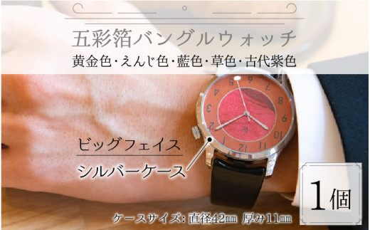 五彩箔バングルウォッチ ビッグフェイス シルバーケース えんじ色 [I-03406b]