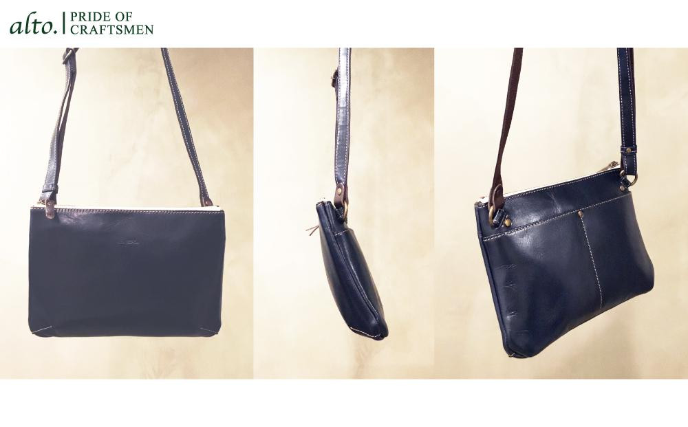 上質な素材で作った大人のワンショルダーバッグ 琵琶湖ブルー【カバン かばん バッグ 鞄 ハンドメイド】