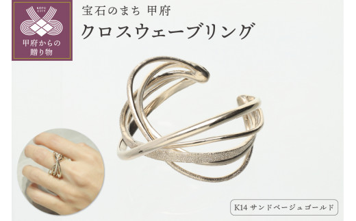 - 〈 甲府ジュエリー 〉【サイズ:14号】K14 クロス ウェーブ リングATCS-6031