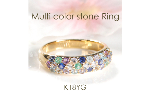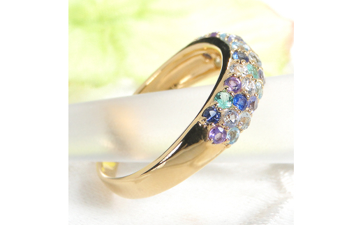 指輪 K18YG イエローゴールド マルチカラー パヴェリング サファイア エメラルド 花畑 ブルー 青系 誕生石 カラーストーン 【f235-b-k18yg】※15.5号 ALPAZ110-15_5