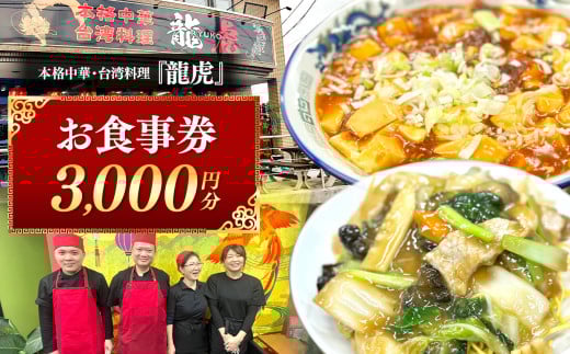 本格 中華 ・ 台湾 料理 『龍虎』 お食事券 【3,000円分】 3,000円分× 1枚 | テラス席 わんちゃん同伴 ハーフサイズメニュー 中華料理 コース料理 日替わり ランチ 宴会 エビチリ 麻婆豆腐 回鍋肉 駐車場 千葉県 君津市 きみつ