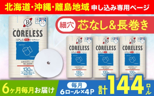 - 【北海道・沖縄・離島用】【全6回定期便】【細穴タイプ】トイレットペーパー シングル 24ロール 長巻き 130m (6ロール×4パック) 宅配 コアレス 《豊前市》【大分製紙】 [VAA137]