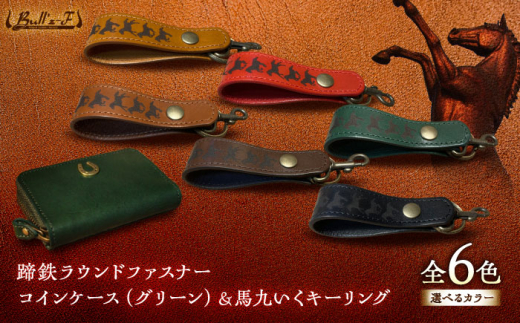 蹄鉄ラウンドファスナーコインケース(グリーン)&馬九いくキーリング(レッド) 栗東市 / 株式会社ブルズエフ [BIAU147]