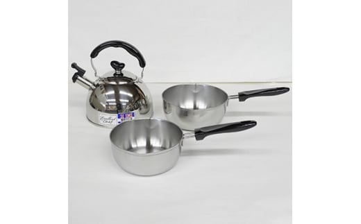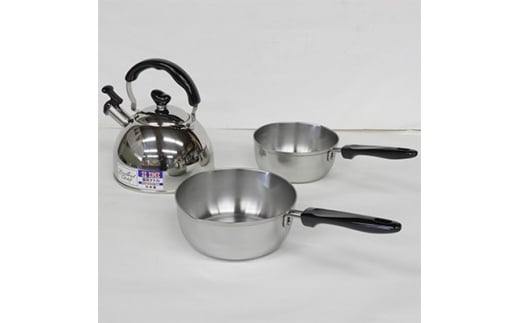 ステンレス製 行平鍋2点と笛吹きケトル2.5Lのセット FC012152