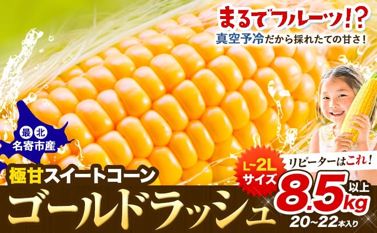 【先行予約】【特大】とうもろこし 極甘 スイートコーン 「 ゴールドラッシュ 」 8.5kg 以上 【2026年8月上旬-9月中旬頃出荷】 とうもろこし 極甘 スイートコーン 「 ゴールドラッシュ 」 特大 北海道20~22本 特大 サイズ北海道 朝採れ 真空予冷 冷蔵 高糖度 トウモロコシ ギフト お中元 コーン なよろイエロー 名寄イエロー TVで紹介