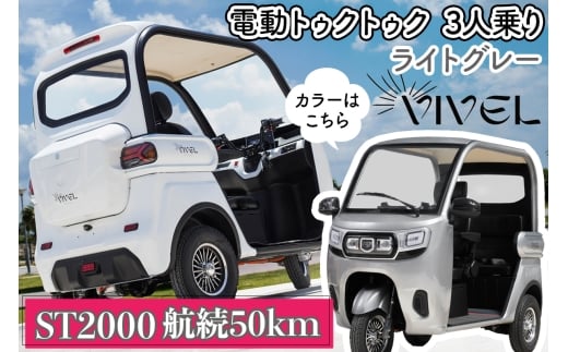 《電動トゥクトゥク》VIVEL (EV TRIKE) 3人乗り ST2000 ライトグレー 航続50km|ビベルトライク 電気トライク EVトゥクトゥク 電動乗り物 電動自動車 電気バイク [0545]