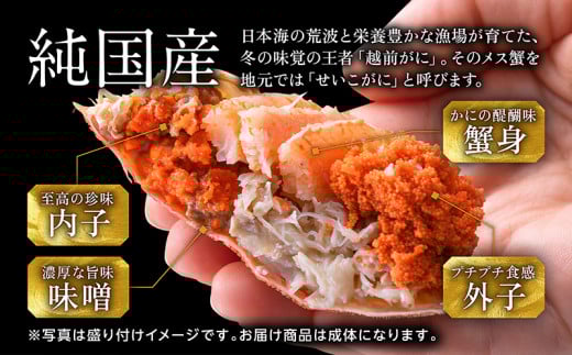 - 【冷蔵発送】【先行予約 9月10月限定】越前がに(メス)「せいこがに」 大サイズ 180g前後 × 5杯
