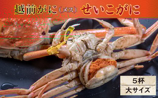 【冷蔵発送】【先行予約 9月10月限定】越前がに(メス)「せいこがに」 大サイズ 180g前後 × 5杯