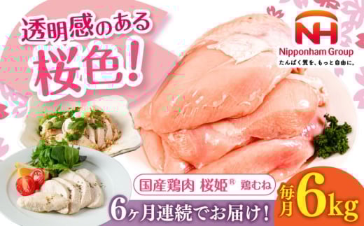 - 【全6回定期便】桜姫 鶏むね 計6kg(2kg×3パック)《厚真町》【東日本フード株式会社】 桜姫 国産鶏肉 鶏肉 鶏 とり肉 ムネ むね肉 鶏むね 冷凍 北海道 [AXBM018]