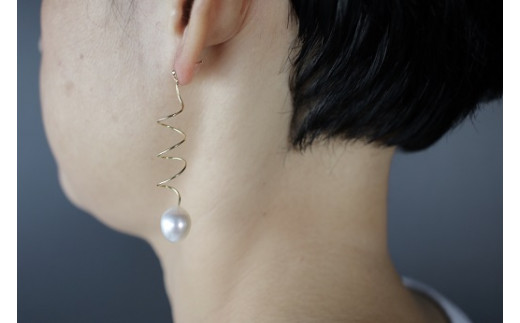 423 白蝶真珠オーバルナチュラル18金コイルデザインピアス 真珠 K18 ジュエリー ピアス パール 南洋真珠 18金