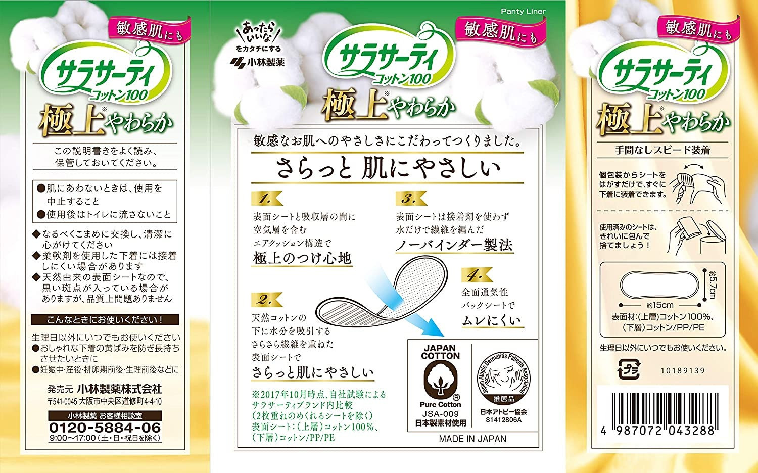 - 大容量 サラサーティコットン100 極上やわらか 52個×18袋セット(無香料) 天然コットン100% 生理用品【愛媛小林製薬】
