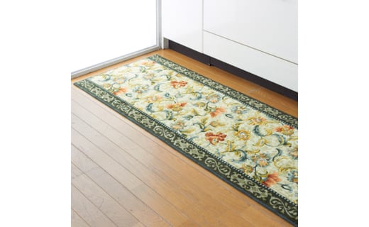 日本製 廊下カーペット 65cm×180cm <オリエンタル更紗> 滑り止め加工 (グリーン)【1273135】