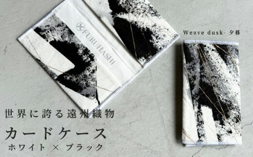 - 【ふるさと納税】カードケース Weave dusk- 夕暮(ホワイト × ブラック)(裏地:ホワイト) 古橋織布 織物職人が作る上質な肌ざわりのカードケース 遠州織物 ユニセックス 男女兼用 1点物 ペイント おしゃれ シャトル織機 浜松市