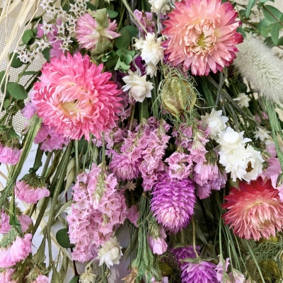 信州八ヶ岳の麓から贈るドライフラワースワッグ M(ピンク)【1662270】