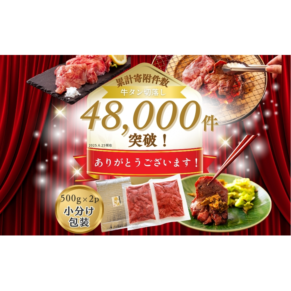 牛タン 訳あり 厚切り 不揃い 1kg ( 500g × 2袋 ) 塩竈の藻塩使用 牛たん バーベキュー 焼肉 BBQ オンラインワンストップ 自治体マイページ 宮城県 東松島市