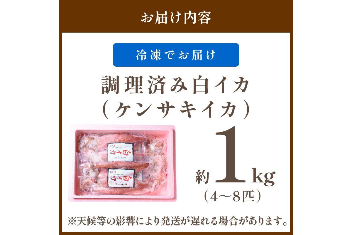 BBQに最適! 白イカ(ケンサキイカ) 調理済み 正味1kg入り(4~8匹) ※小分け真空包装 UO01225