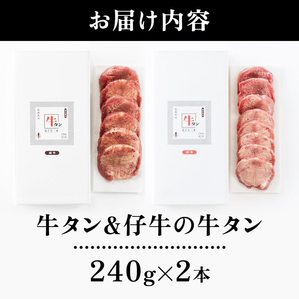 『陣中』 牛タン丸ごと一本食べ比べセット 計2本 本塩麹熟成 成牛240g 仔牛240g 仙台 牛たん屋