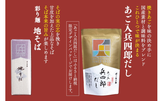 - 出汁 蕎麦 セット 彩り麺 地そば あご入兵四郎だし (9g×30袋) 各1つ セット [ 味の兵四郎 福岡県 筑紫野市 21760205] そば あご出汁 あごだし 兵四郎だし だし ダシ だしパック 出汁パック 粉末
