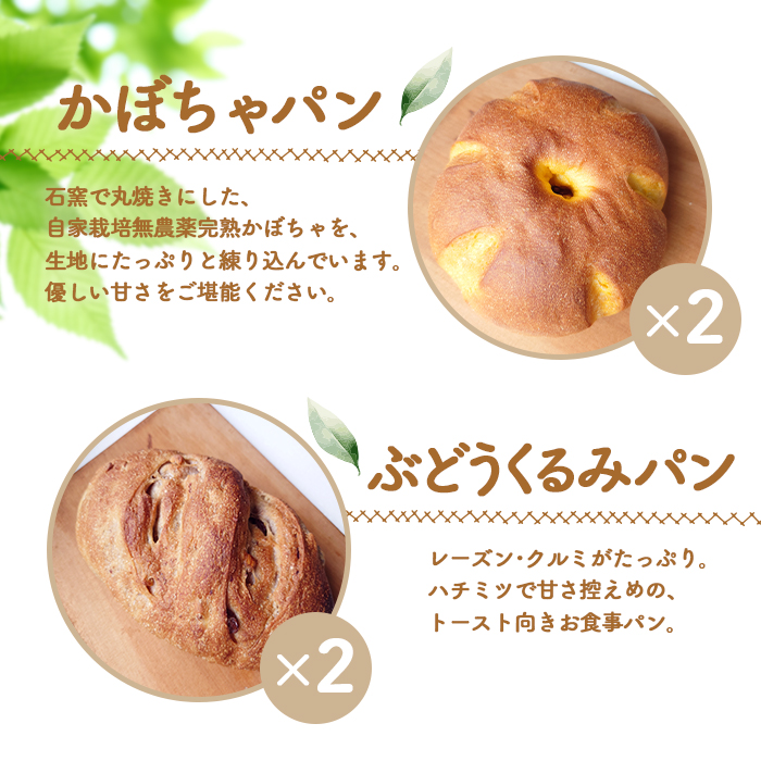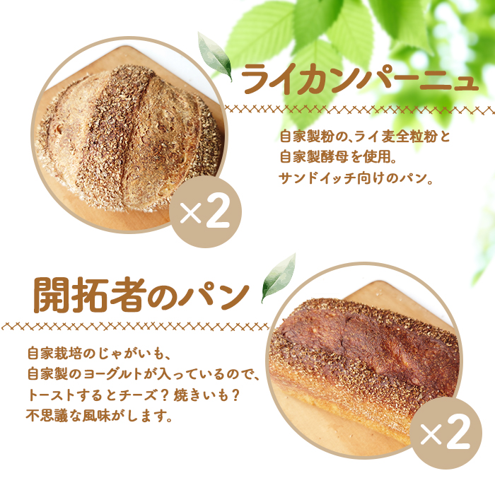 - 【ニセコ町】奥土農場のお楽しみパン4種詰め合わせセット×各2個(ライカンパーニュ・開拓者のパン・かぼちゃパン・ぶどうくるみパン)【42002】