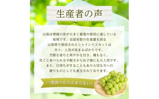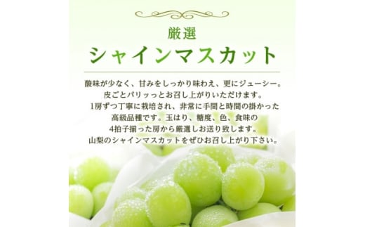 2026年発送 山梨県産 シャインマスカット 約1kg(2~3房) 山梨が誇る人気果物 熟練農家厳選【1272524】