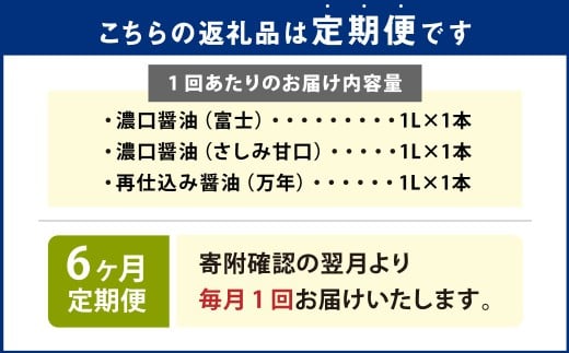 【6ヶ月定期便】 お醤油3種味比べセット / 調味料 醤油 しょうゆ おしょうゆ 濃口 こいくち 甘口 あまくち 料理 大分県 九重町