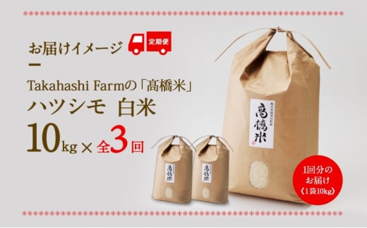 - [№5568-0402]定期便 全3回 米 令和7年 ハツシモ 高橋米 10kg 1袋 お米 精米 白米 ごはん ご飯 はつしも あっさり ふっくら ブランド米 10キロ お取り寄せ 産地直送 送料無料 高橋ファーム Takahashi Farm 岐阜県 揖斐川町