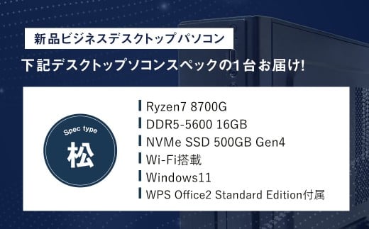 - スペック指定 ビジネス デスクトップ パソコン 福袋 松 (Windows11正規対応・CPU AMD Ryzen7 メモリ 16GB) WPS Office2 Standard Edition付属 岡山県 奈義町
