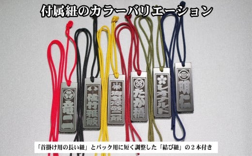青黒檀ネームタグ・ネックレス彫刻木札【家紋入】(フダヤドットコム.三丁御頭) (紐:黒、和柄:宝づくし)