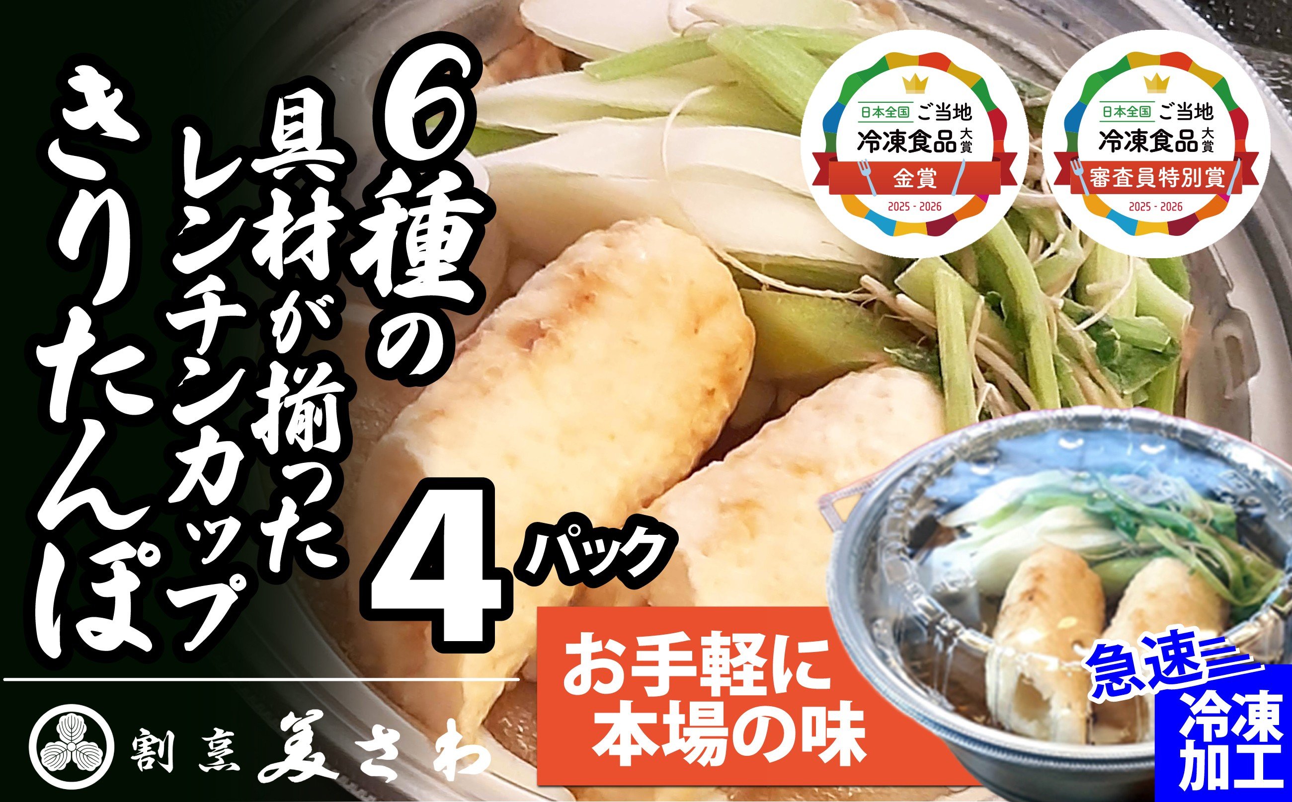 - 【割烹美さわ】6種の具材が揃ったレンチンカップきりたんぽ(4パック) 75P1254 / 本場 きりたんぽ 鍋 比内地鶏 比内鶏 郷土 料理 簡単 調理 ひないどり ブランド肉 野菜芹 セリ まいたけ ごぼう だし キリタンポ なべ 食材 出汁 取り寄せ 東北 秋田 手軽 ご当地 レンジ レンチン レンジアップ 東北 秋田 大館 大館市 ひないじどり ヒナイジドリ ヒナイドリ きりたんぽ鍋