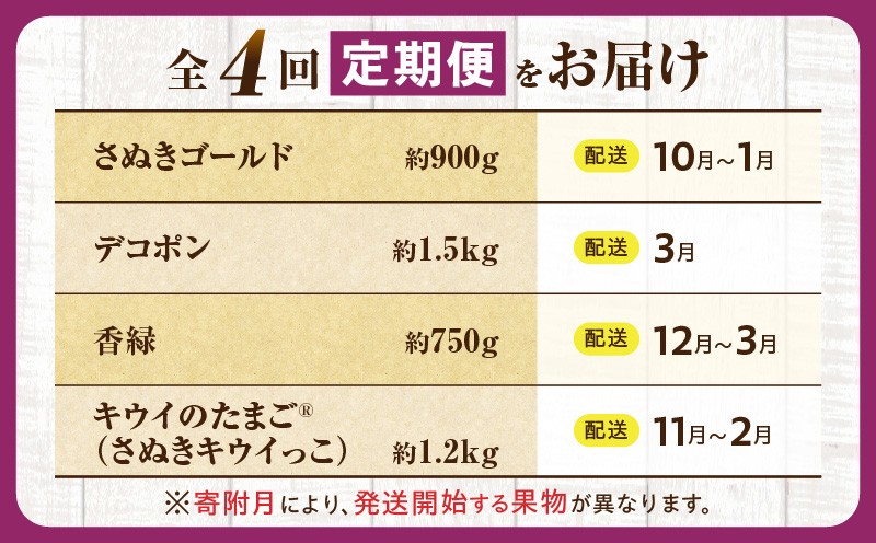 - とれたて果物 4回定期便E 果物 フルーツ 果物定期便 フルーツ定期便 定期便 キウイ デコポン濃厚 旬の果物 定期 人気 おすすめ 贈答 贈り物 青果物 糖度 香川県 _mk165-t078