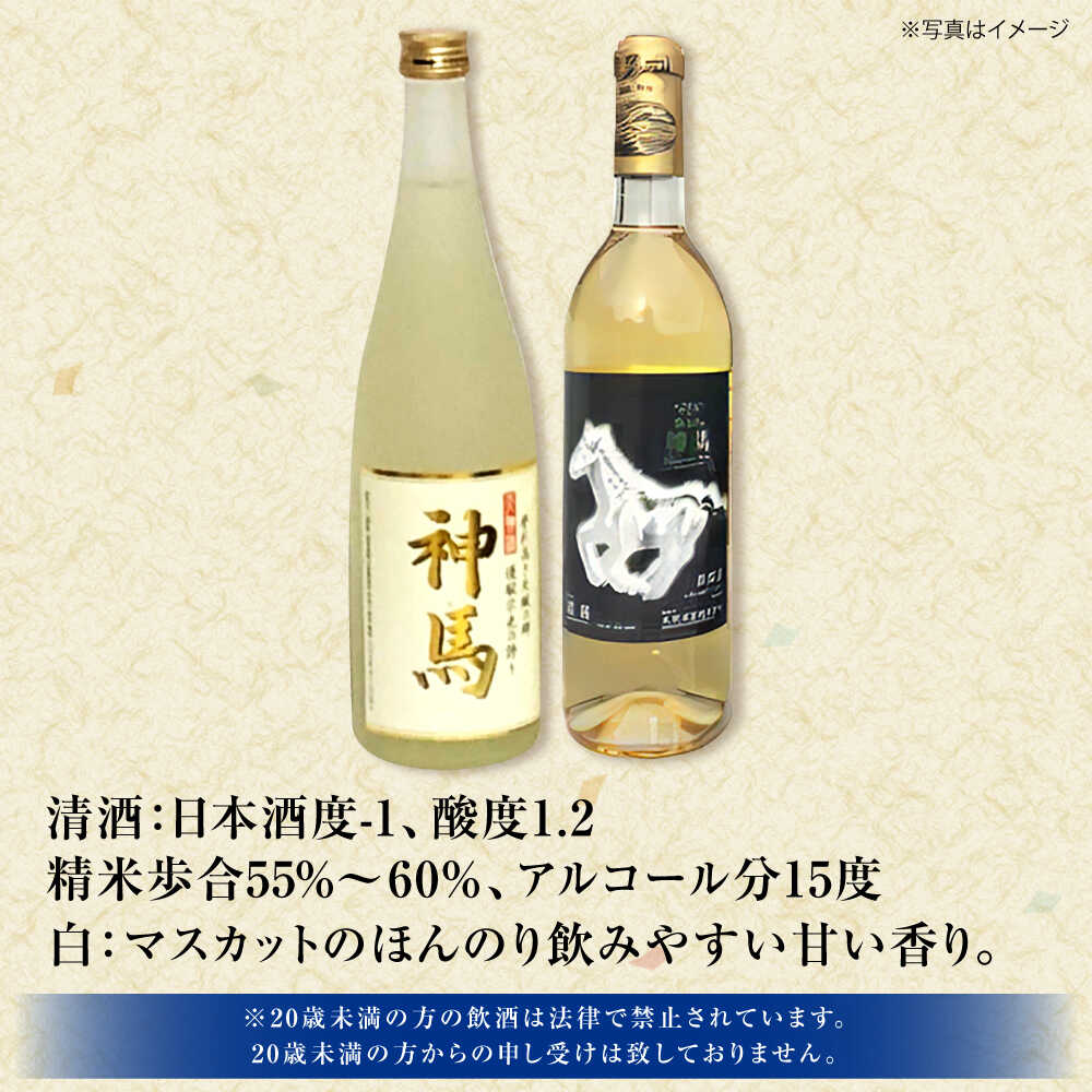 - 【ふるさと納税】「神馬」生貯蔵酒・白ワインセット 各720ml 計2本 / お酒 飲み比べセット 日本酒 白ワイン 人気 おすすめ / 栗東市 / 酒甚[BIAK015]