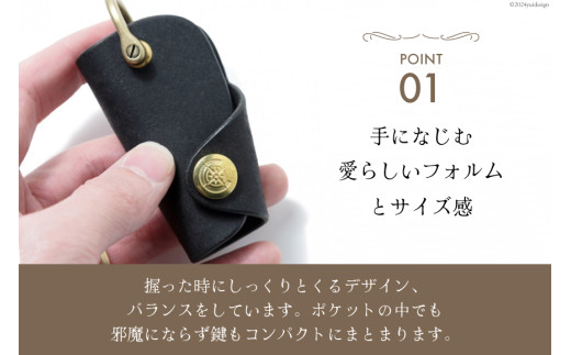 - ボタンフックキーケースS ブラック [FUCHA 石川県 志賀町 CJ5004-b] Button Hook Key Case S イタリアンレザー プエブロレザー ハンドメイド 手縫い 革製品 本革