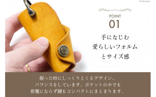 - ボタンフックキーケースL イエロー [FUCHA 石川県 志賀町 CJ5005-f] Button Hook Key Case L イタリアンレザー プエブロレザー ハンドメイド 手縫い 革製品 本革