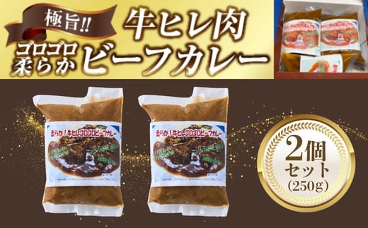 - 極旨!柔らか牛ヒレ肉ゴロゴロ贅沢ビーフカレー2食セット ごろっと食感 本格カレー 牛肉 ヒレ肉 牛ヒレ肉 国産牛 ビーフカレー ごろごろ 柔らか 濃厚 旨みたっぷり カレー 牛ヒレカレー ヒレ肉カレー 国産牛カレー 贅沢 個包装 冷凍 温めるだけ 湯せん お中元 お歳暮 クリスマス 正月 おせち ギフト 家族用 非常食 保存食 大阪府 河内長野市 老舗フレンチ 国産素材 電子レンジ