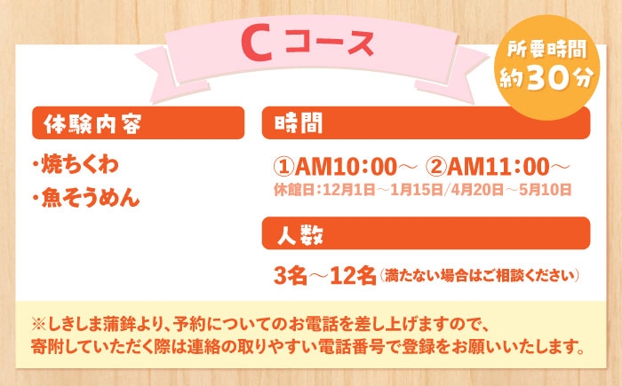 - 【Cコース】おいしい出来たて かまぼこ作り体験 / カマボコ 蒲鉾 練り物 焼きちくわ 揚かまぼこ 魚そうめん / 南島原市 / しきしま蒲鉾 [SAR015]