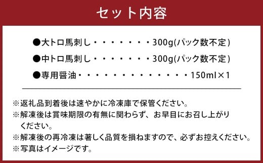 - 【桜屋】 大トロ中トロ 馬刺し 各約300g 食べ比べ 計約600g (専用醤油付き150ml×1本) 馬肉 お肉 馬刺