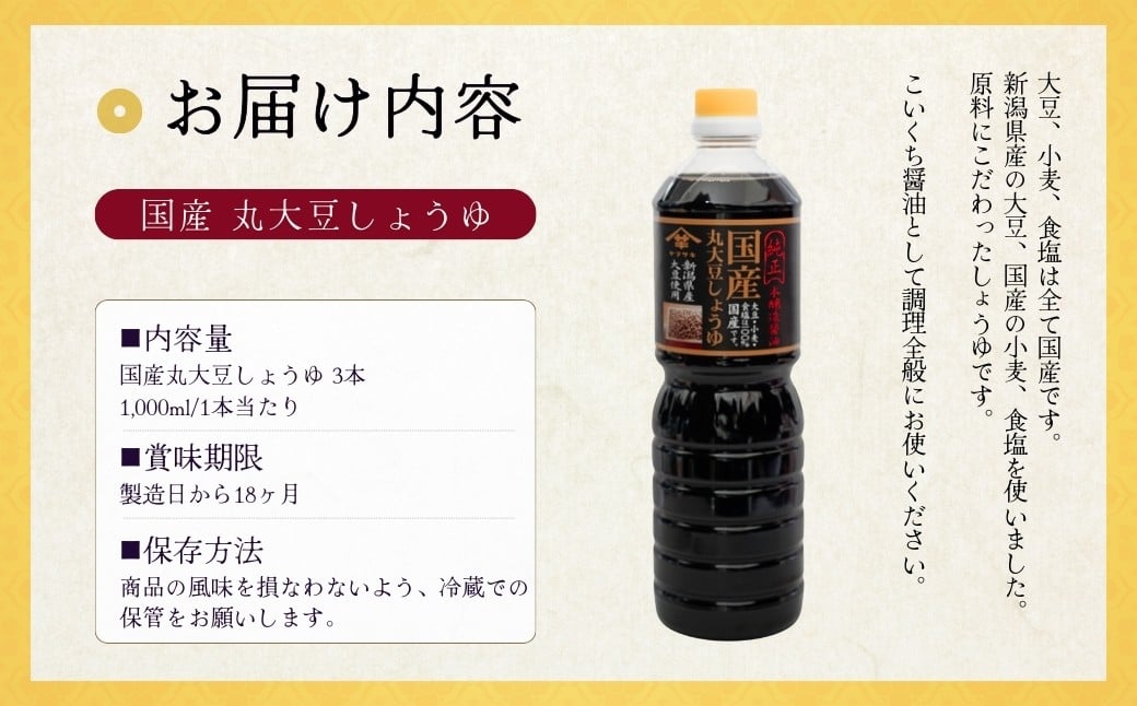 国産丸大豆しょうゆ1,000ml×3本セット 醤油 だいず 山崎醸造 【0002-0371-01】