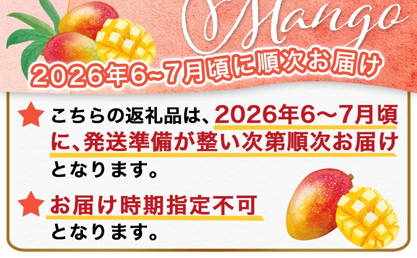 【ふるさと納税】【選べるサイズ】<宮崎県産 完熟マンゴー 4L×2玉(合計 約1kg)または3L×2玉(合計 約900g)または2L×2玉(合計 約700g)> ※2026年5月上旬~7月中旬までに順次出荷 果物 フルーツ マンゴー ギフト 贈答品 宮崎県 高鍋町【冷蔵】