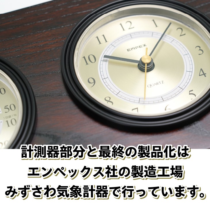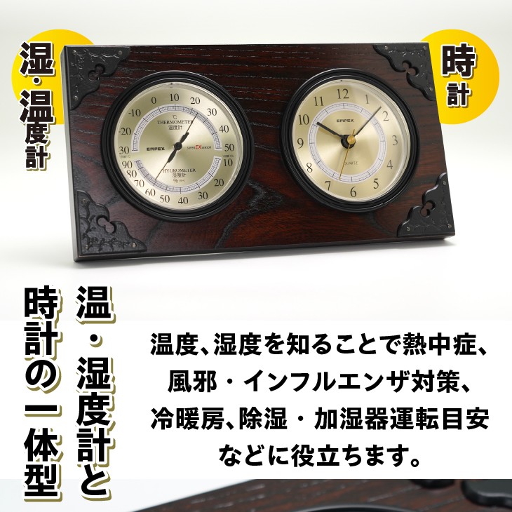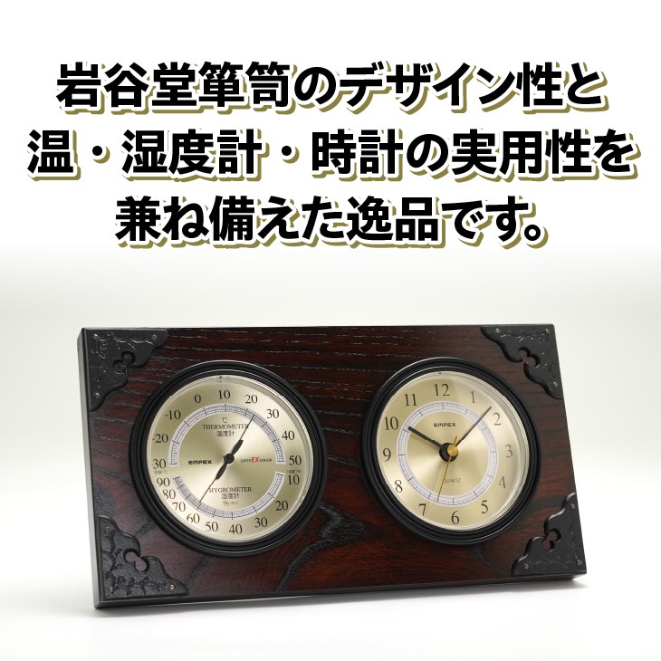 - 岩谷堂箪笥 × エンペックス スーパーEX温・湿度計・時計 TM-6143 コラボ 温湿度計 卓上 天然木 鉄 インテリア [AJ020]