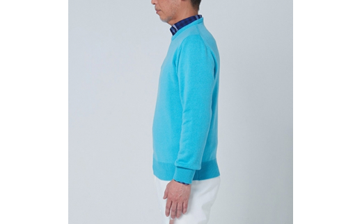 日本製 カシミヤ100% クルーネック ターコイズブルー 2Lサイズ [2620]