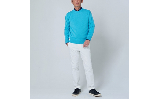 - 日本製 カシミヤ100% クルーネック ターコイズブルー 2Lサイズ [2620]