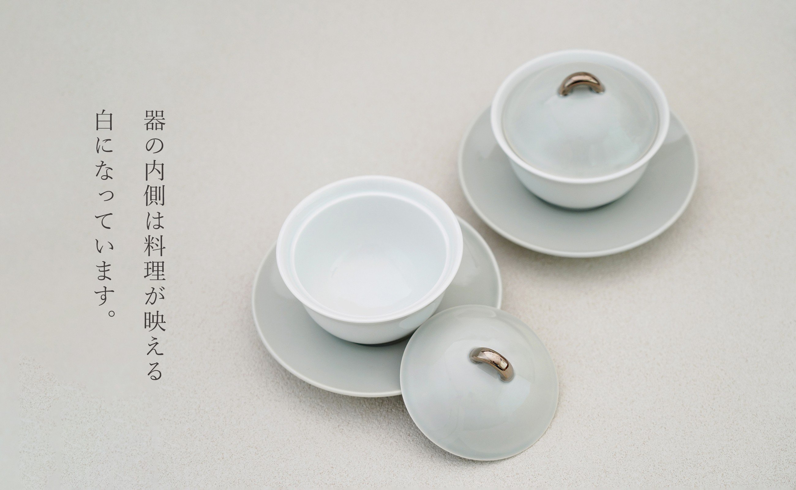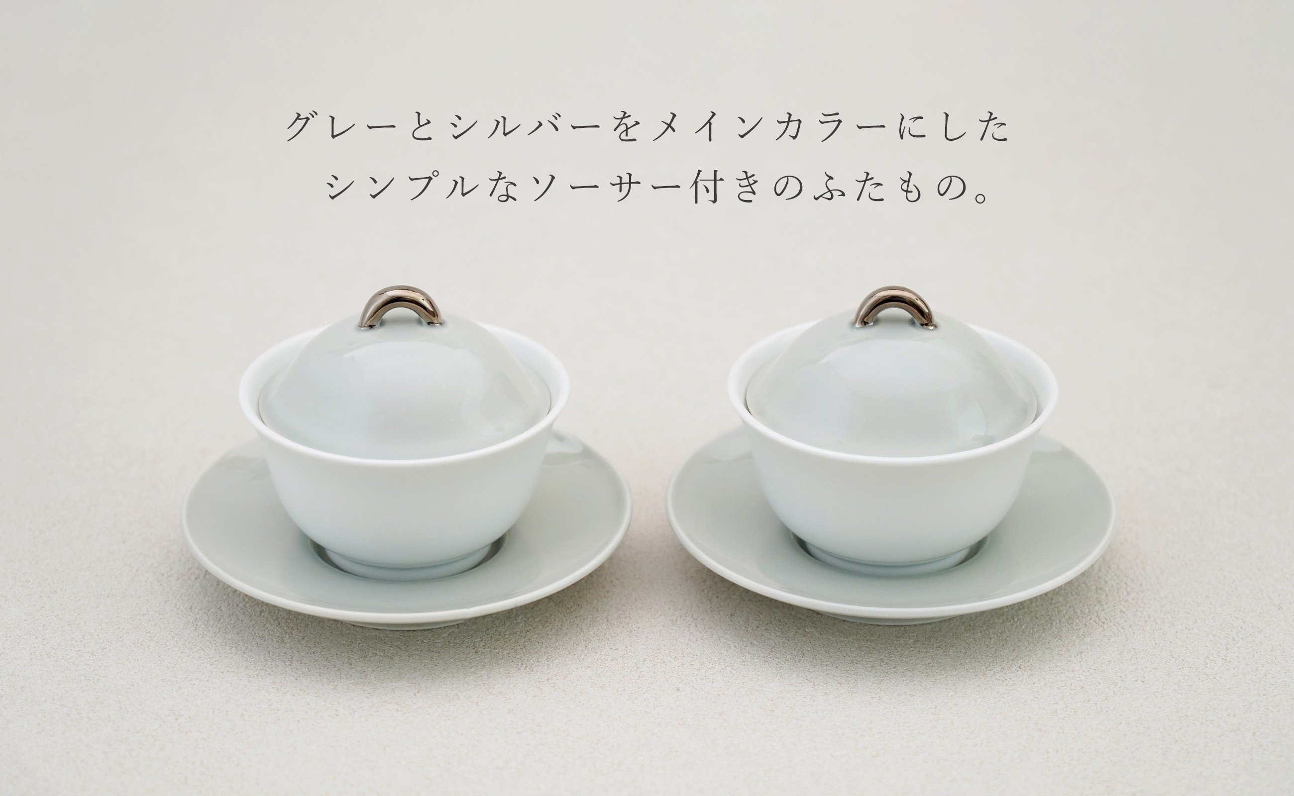 - 有田焼 台皿付き 蒸し碗 セット(アクアつまみ銀)【田清窯】食器 器 うつわ 蓋物 茶碗蒸し 食器 蒸し碗 お祝い ペア ふたもの 50000円 5万円 A50-293
