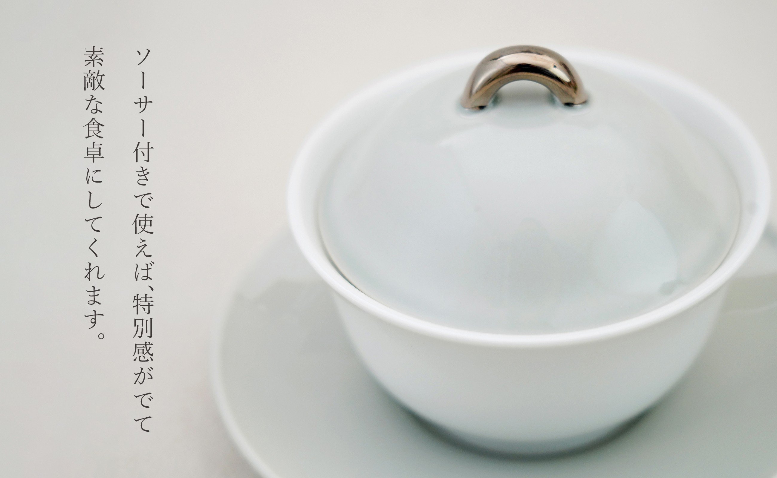 有田焼 台皿付き 蒸し碗 セット(アクアつまみ銀)【田清窯】食器 器 うつわ 蓋物 茶碗蒸し 食器 蒸し碗 お祝い ペア ふたもの 50000円 5万円 A50-293
