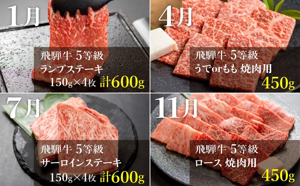 - 飛騨牛 ステーキ 焼肉 セット 霜降り・赤身堪能定期便 4回定期便 肉の沖村 牛肉 肉 御中元 熨斗掛け 150000円 定期便 赤身